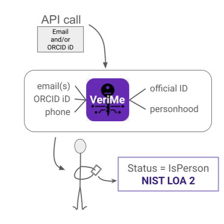 A Validation request for this VeriMe account with Evidence Markers for email, ORCID iD, phone number and proof of identity and personhood returns an “IsPerson” value.